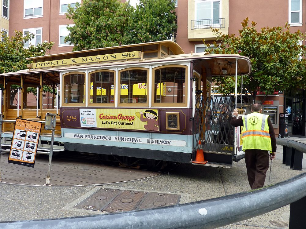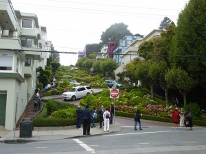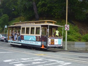 Nous arrivons au terme de notre voyage. Pour cette dernière journée, nous parcourons les rues de San Francisco, à pied, en cable-car et en taxi. Les distances sont grandes et les multiples collines ne nous facilitent pas la tâche. Nous assistons à un demi-tour du cable-car sur une plate-forme en bois. Il est poussé à la main par 2 hommes qui le font tourner. C’est étonnant.