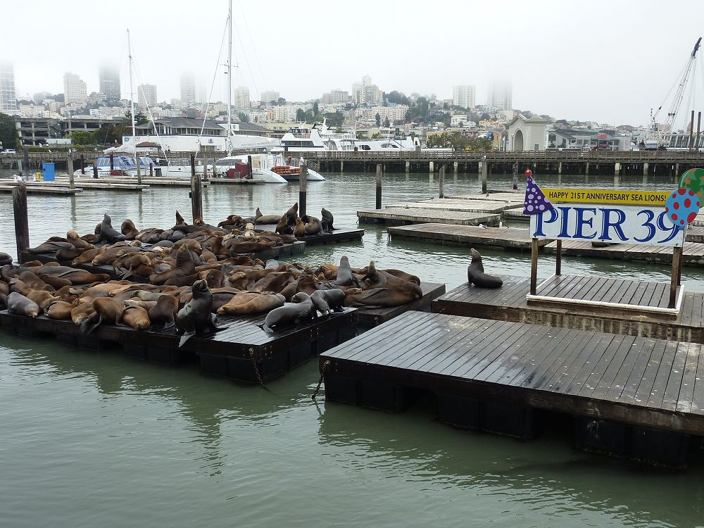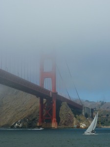 Dans l’après-midi, nous faisons une balade en bateau dans la baie pour tenter de voir le Golden Gate Bridge. Malheureusement, la brume ne s’est pas levée sur le pont. Nous l’apercevons seulement. Par contre nous pouvons voir l’ile d’Alcatraz célèbre pour sa fonction de prison, désaffectée aujourd’hui.