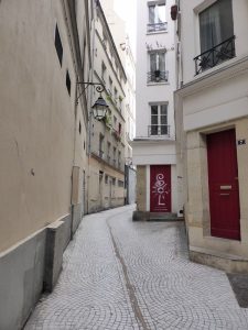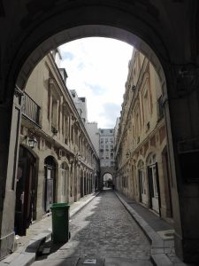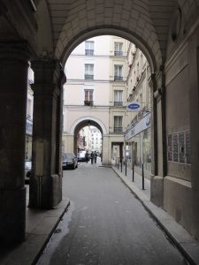 Allez on continue ! Le passage Lemoine puis le passage des Dames de St Chamond, invisible, il est constitué de deux cours successives. Pour traverser il faut pousser la porte bleue de l’immeuble (il faut le savoir).