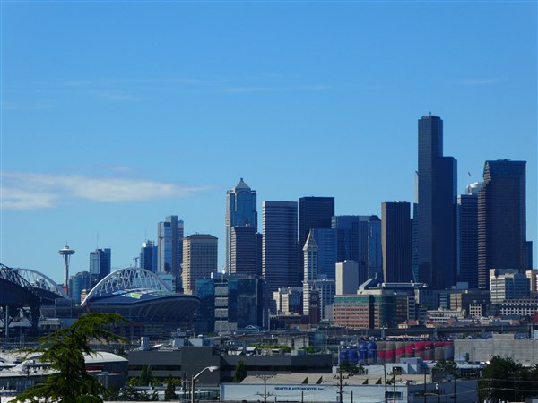 Partis de Paris à 13h, nous arrivons à Seattle à 14h. Rapide le voyage ! Bon, ajoutons maintenant les 9h de décalage horaire et il est déjà 23 h; A cela on ajoute, le temps de récupérer la voiture, de trouver l’hôtel, de faire une balade dans le quartier, de diner et tout de suite on arrive à 5h du matin heure française. Longue journée donc.