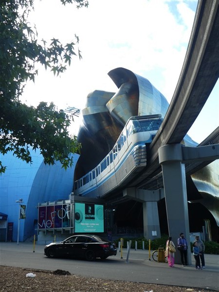 Et en plus, alors que l’on dit qu’il pleut beaucoup à Seattle, nous avons droit à un franc soleil. Quelle chance ! Nous sommes ensuite surplombé par un monorail. Etonnant.