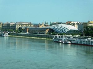 Le long du Danube « La Baleine », centre culturel et commercial se situe tout près du pont de la Liberté.