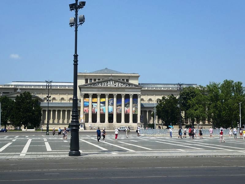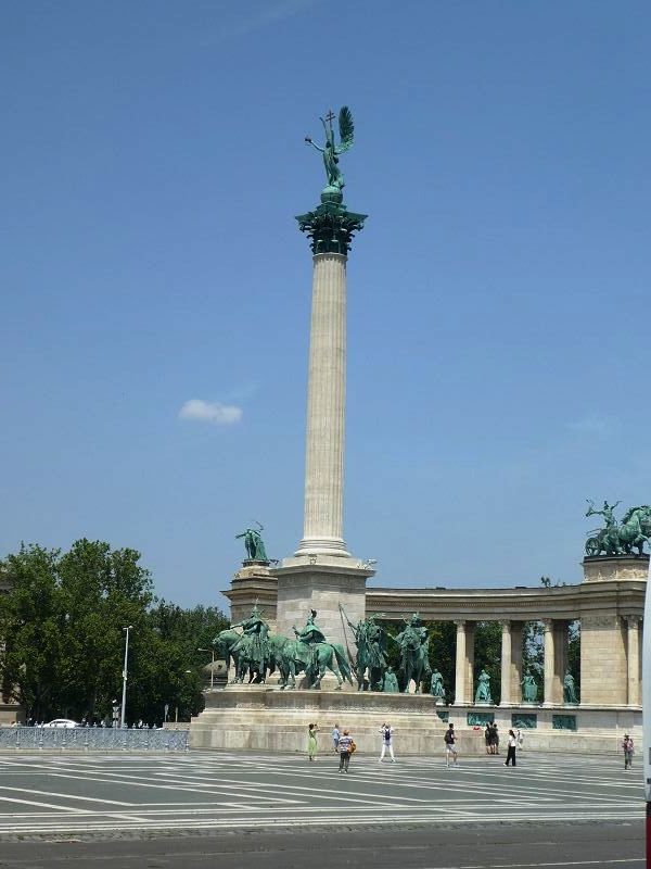 Nous redescendons vers Pest pour admirer l’opéra et la place des Héros. Cette place est située au bout de la superbe avenue Andrassy. Les monuments de cette place ont été construits pour célébrer les mille ans d’installation des magyars. Les chefs des 7 tribus qui ont fondé le pays sont représentés en bas de la colonne centrale. Au fond le musée d’art moderne avec ses belles colonnades.