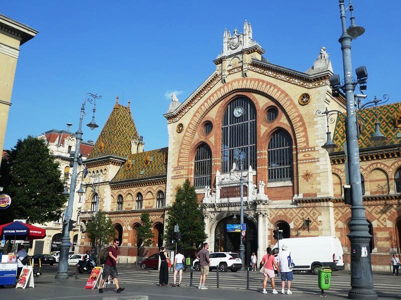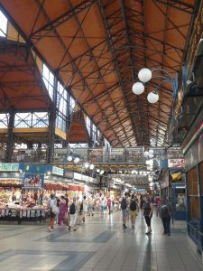 Après la pause déjeuner et une petite sieste, nous nous décidons à ressortir vers 17h pour un petit tour en ville. Le bateau est amarré à 10 minutes à pied du marché central. Superbe édifice datant de la fin du 19ème siècle. Peu d’étals sont encore ouverts à cette heure, mais il est toujours possible d’acheter la spécialité locale : le paprika.