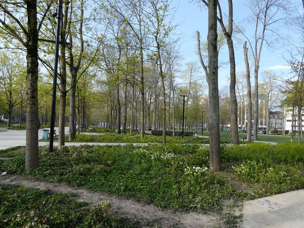 Nous découvrons Reims sous un beau soleil printanier. Face à la gare nous traversons un vaste espace vert créé à l’emplacement des anciens remparts de la ville. Une bouffée d’oxygène ! Colbert y siège. Il faut rendre hommage aux enfants du pays !