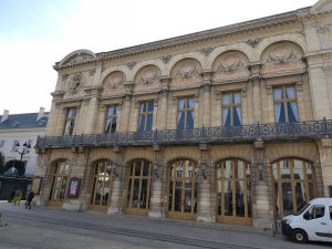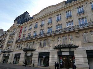 Nous empruntons la rue Drouet d’Erlon. La ville a subit des bombardements quotidiens entre 1914 et 1918. A la fin de la guerre 8000 habitations avaient été détruites et 5000 considérablement endommagées sur la 14000 que comptaient la ville. Il a alors fallu reconstruire vite après-guerre, ce qui a été fait entre 1920 et 1930 conduisant à une architecture plurielle.