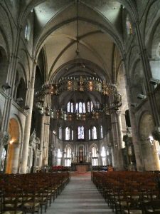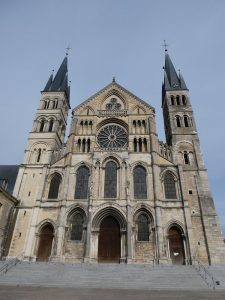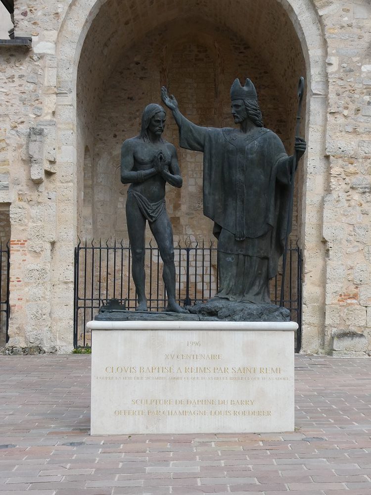 Et on repart, cette fois ci nous nous dirigeons vers le sud pour visiter la Basilique Saint Remi. Vous noterez que je n’ai pas mis d’accent sur le E de Remi. C’est normal, il ne faut pas prononcer Rémi mais Remi. Oui je sais c’est étrange mais apparemment les Rémois y tiennent. Alors… Saint Remi est célèbre car c’est lui qui a baptisé Clovis. Enfin parait-il. On pense que la cérémonie a eu lieu entre 496 et 502.