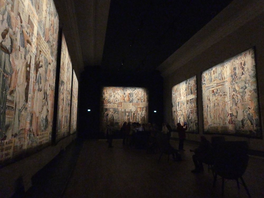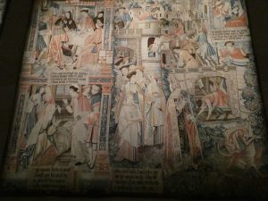 Et le clou du spectacle c’est une salle « waouh » où sont disposées 10 tapisseries du 16ème siècle relatant la vie de St Remi. Récemment restaurées elles se lisent comme une bande dessinée avec une multitude de détails. On pourrait passer des heures à les étudier. Passionnant !