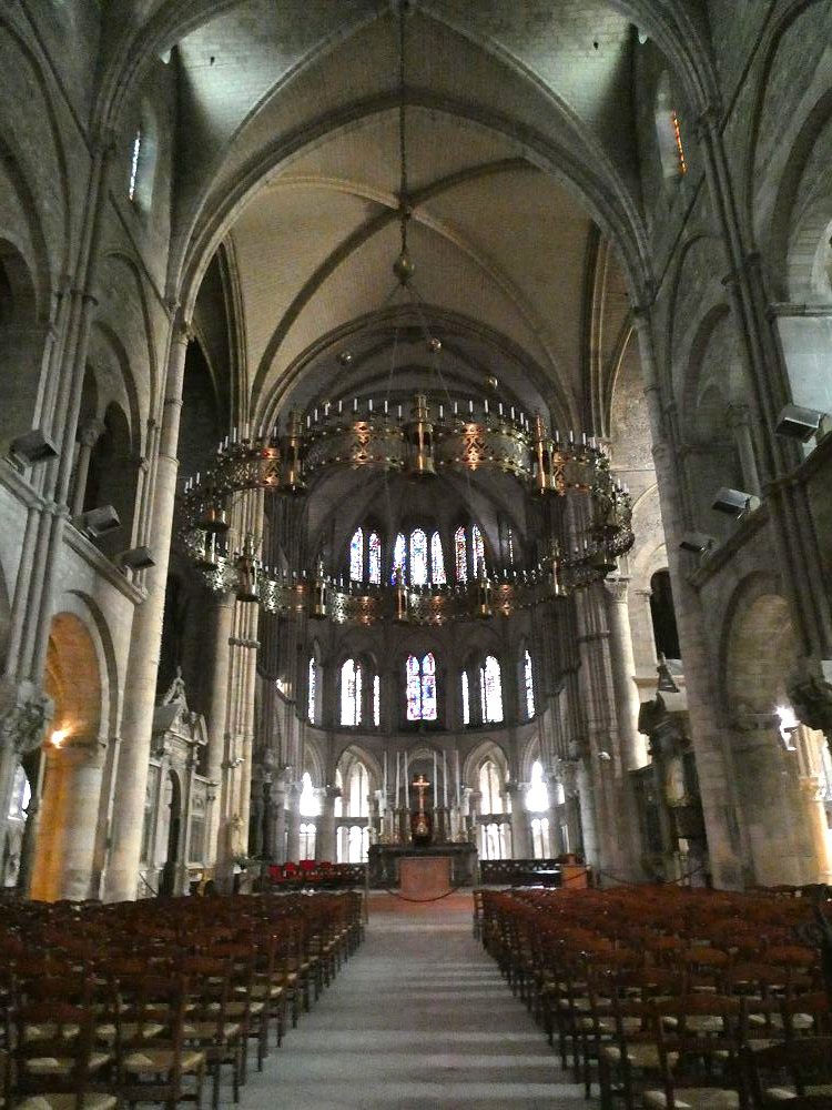Au centre de l’église se trouve un lustre qui représente une couronne avec 12 petites tours qui symbolisent les douze tribus d’Israël de la Jérusalem terrestre. Ses 96 bougies représentent la durée de vie de saint Remi, qui, selon la tradition, est mort à l’âge de 96 ans