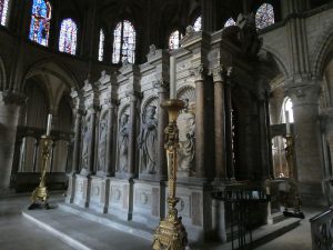 Donc la Basilique a été construite au 11ème siècle pour abriter la Sainte Ampoule qui contenait le Saint Chrème utilisé pour le sacre des Rois et surtout pour abriter les reliques de St Remi. Elles sont conservées dans un reliquaire richement décoré, lui-même protégé par un tombeau.