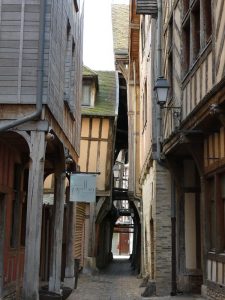 En flânant dans les ruelles pavées, le nez en l’air, on a tout loisir d’admirer les façades des maisons à pans de bois construites pour la plupart au 16ème siècle.