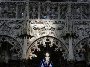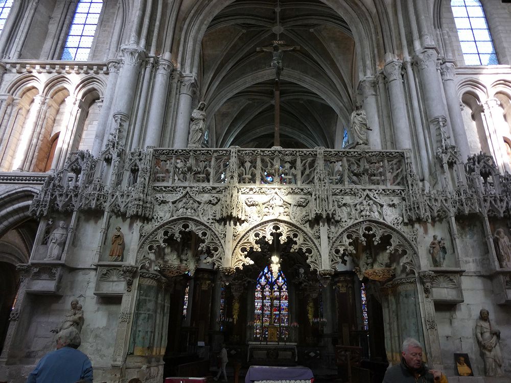 Nous poursuivons notre promenade jusqu’à l’église Sainte Madeleine pour y admirer un splendide jubé finement décoré. Il reste très peu d’églises en France ayant conservé leur jubé.